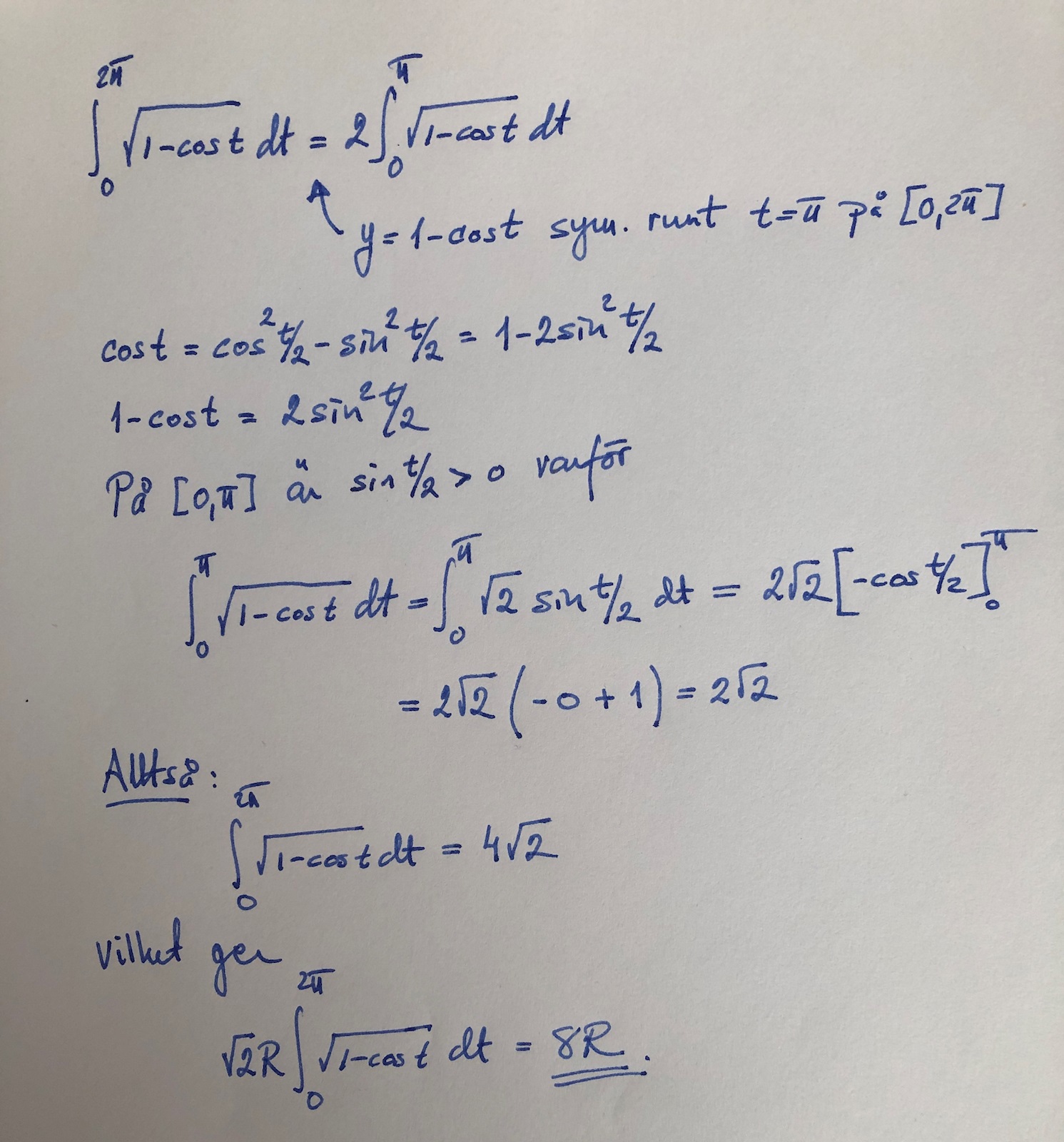 Rättelse: sin(t/2)≥0 på [0,π] - slarv, men rätt skall vara rätt.