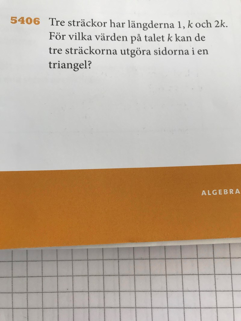 Börja med att välja några olika värden på k, exempelvis 0, 1, 2, 3 och -1. För vilka av dessa k:n kan du rita en triangel?
