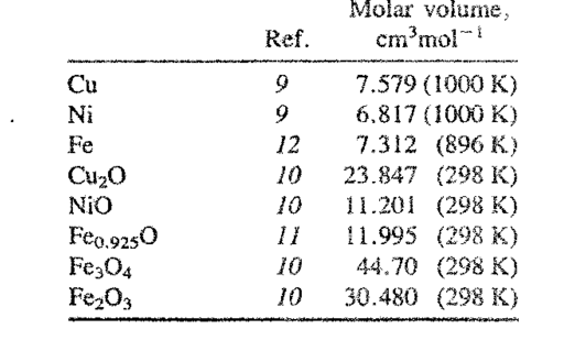 Man ser koppar, nickel och järn. Men även Cu2O blir 8 cm3 per mol atomer. Och järnoxid blir typ 6 cm3 per mol atomer oberoende av vilken oxid det är.