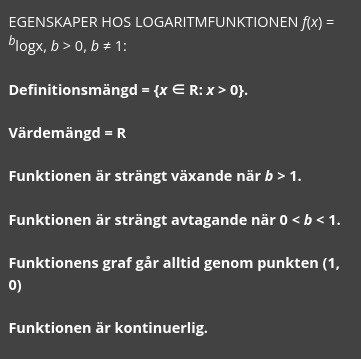 Hej, hur vet jag om en logaritmfunktion är strängt växande eller avtagande? Inom vilket intervall på defintionsmängden är den avtagande eller växande?