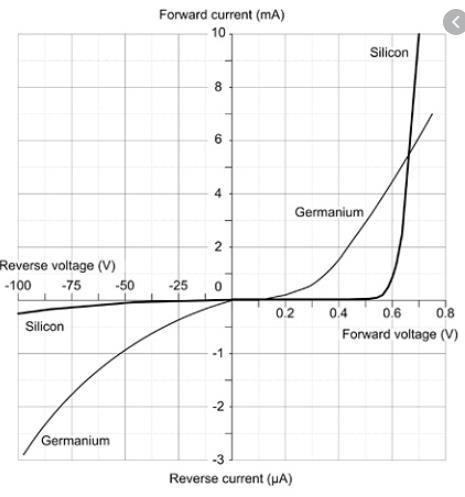 Men som du ser i grafen nedan, för en "ickeidealare" diod så hade det inte heller varit lika lätt, då hade man varit tvungen att titta i grafen vilken spänning dioden hade fått vid just den strömmen (dvs den hade haft en mer resistansliknande karaktär än kiseldioden).