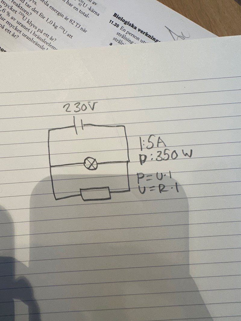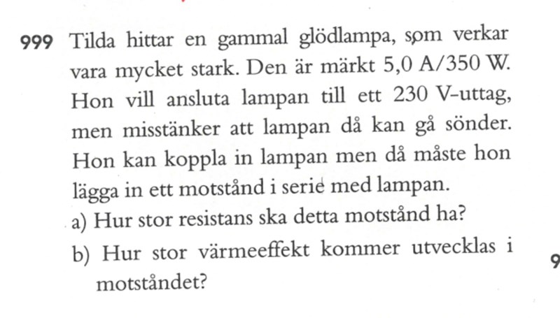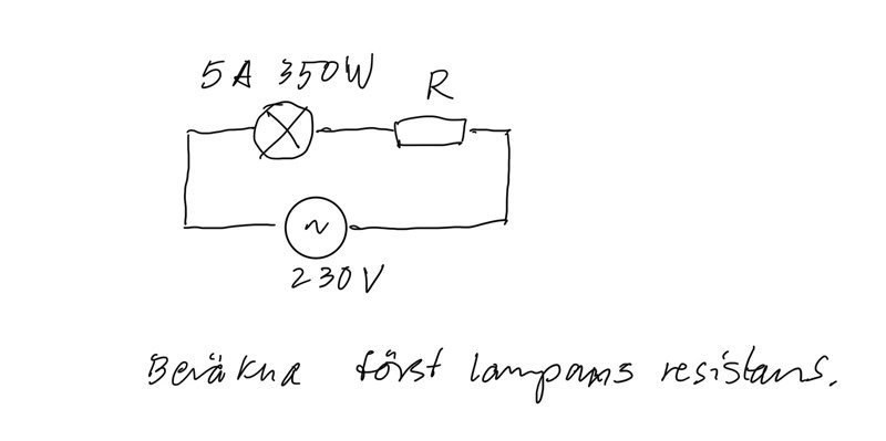 Missade att det var serie. Men nu är jag fast igen. Om jag räknar ut lampans maximala spänning utan att gå sönder är det P/I=U=350/5=14 V. sen vad?