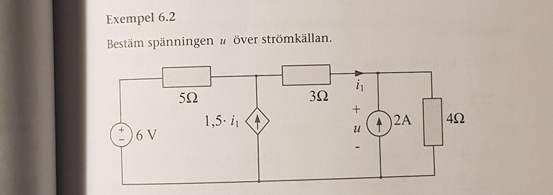 Texten tyder på att de vill att man ska använda superposition, men sen gör man på annat sätt. Sen undrar jag vad som är spänningen u? Kan inte hitta den nånstans.