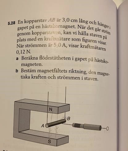 Behöver hjälp med b). Har bestämt magnetfältets riktning som lodrätt nedåt men vet inte hur jag ska få de andra?