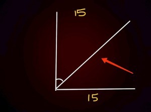 Den där vinkeln ser ut att vara ungefär 45o. Lite bättre kan du rita, även utan gradskiva!
