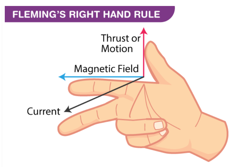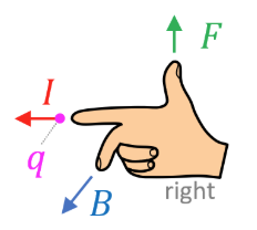 sätter att tummen motsvarar F, pekfingret motsvarar b (flödestäthet), och tummen ström
