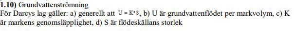 Fråga 1.5 vet jag nästan inget om men fråga 1.10 så verkar det inte stämma alls då darcys lag skrivs på ett annat sätt?