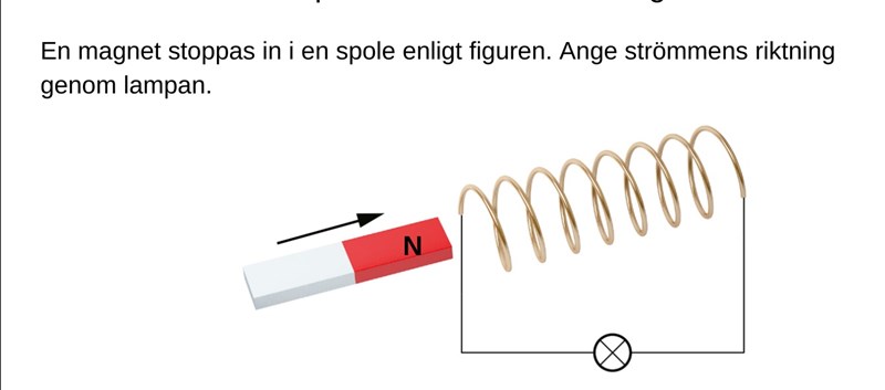 Åt vilket håll går stavmagnetens magnetfält genom spolen? Vad säger Lenz lag om strömmen som uppstår?