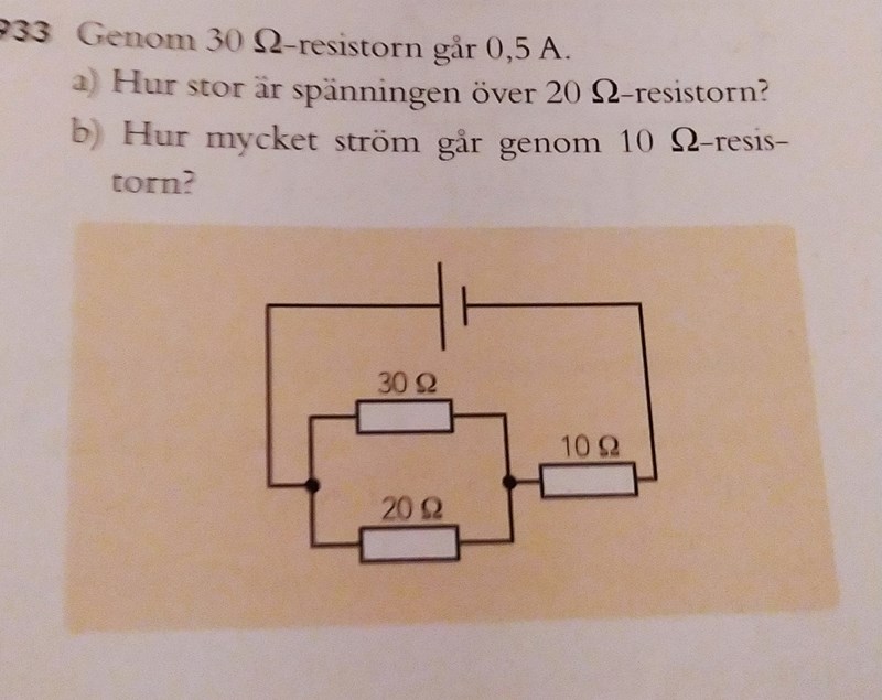 Jag har gjort a) och fått 15V vilket stämde. Men sedan på b) gjorde jag att den totala strömmen är lika med den totala spänningen delat i ersättningsresistansen. u är samma som i a) alltså 15 V. Sedan adderade jag alla motstånd för att få ersättningsresistansen. Så I=15/60=0.25A men facit säger 1.25A. varför?