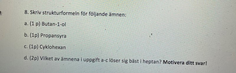 Du behöver kunna "översätta" från namn till strukturformel och tvärtom. Du behöver lära dig namnen på mättade kolväten med 1-10 kolatomer (meta, etan, propan och så vidare upp till dekan) och de olika funktionella grupperna.