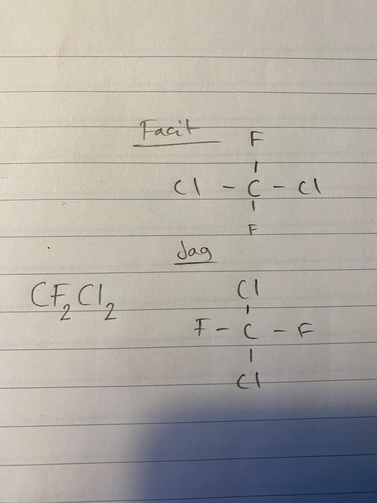 Det stämmer strukturformlerna är identiska. Men denna molekyl är så pass enkel att strukturformeln blir som du och facit skrev den. Detta är att betrakta som ett specialfall då det endast finns två olika atomer bundna till kolet, och två av varje typ av atom.