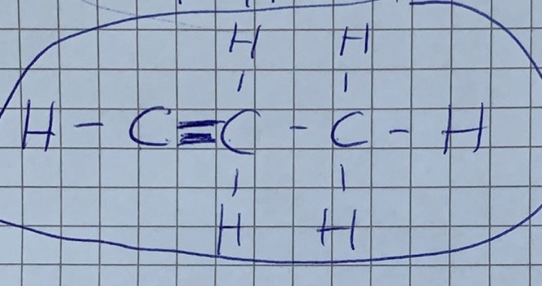 Nu har jag skrivit strukturformeln som CH-CH2=CH3