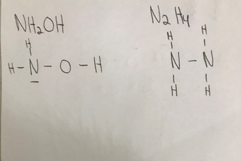 Koldioxid har en trippelbindning hydroxylamin är tetraedrisk runt både kväve och syre hydrazin är också precis som man skulle förvänta sig