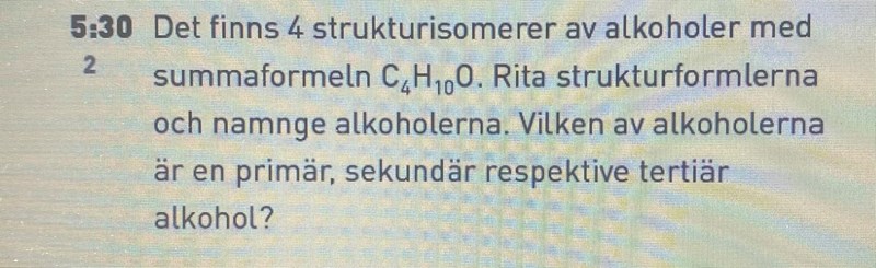 Jag har fastnat på denna fråga, hittade lösningen på yt, men förstår inte riktigt hur man kan se vilka strukturisomerer som bildas, borde inte 1 metyl-2 propanol också vara ett alternativ? en isomer?