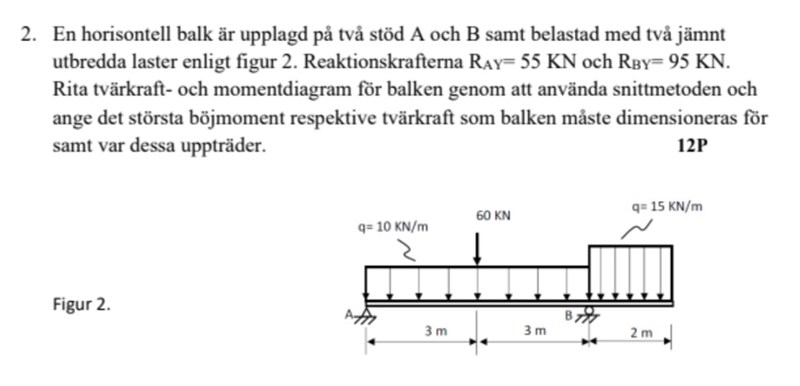 Det ser ut som att du gör ett teckenfel på 2a raden i momentekvationen för termen för den utbredda lasten 15kN/m.