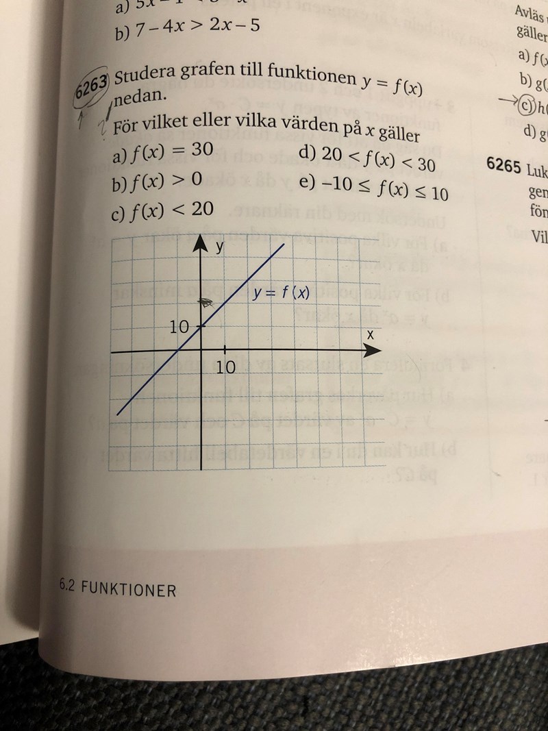 Ja nu förstår jag, men där på b ska jag då hitta värdet på x när y är större än 0?
