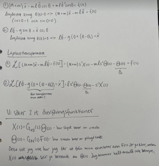 Styr och Regler Inverterad Pendel Överföringsfunktion