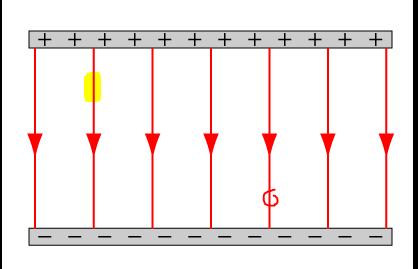 Dras båda ner av lika stor kraft, men med olika hastigheter? Till följd av att den elektriska fältstyrkan är lika stor överallt?