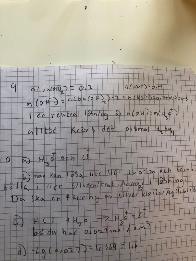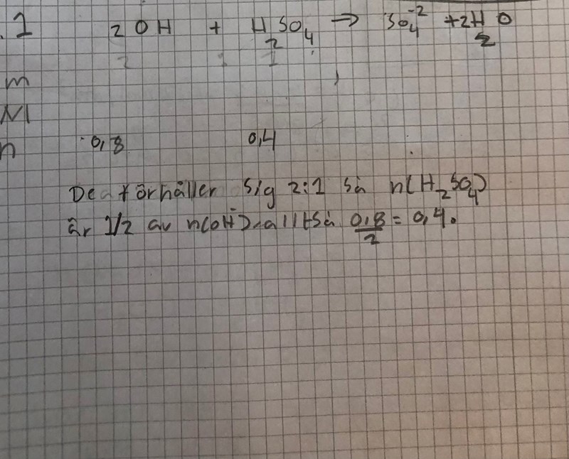 Smaragdalena skrev:Som i din andra uppgift som ocksp handlar om svavelsyra - börja med att skriva en reaktionsformel. Utan den blir det fel, som här.