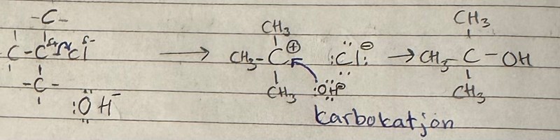 okej så det är alltså trångt för OH- att attakera kolet då den är bunden till andra kolatormer, har jag uppfattat det rät?