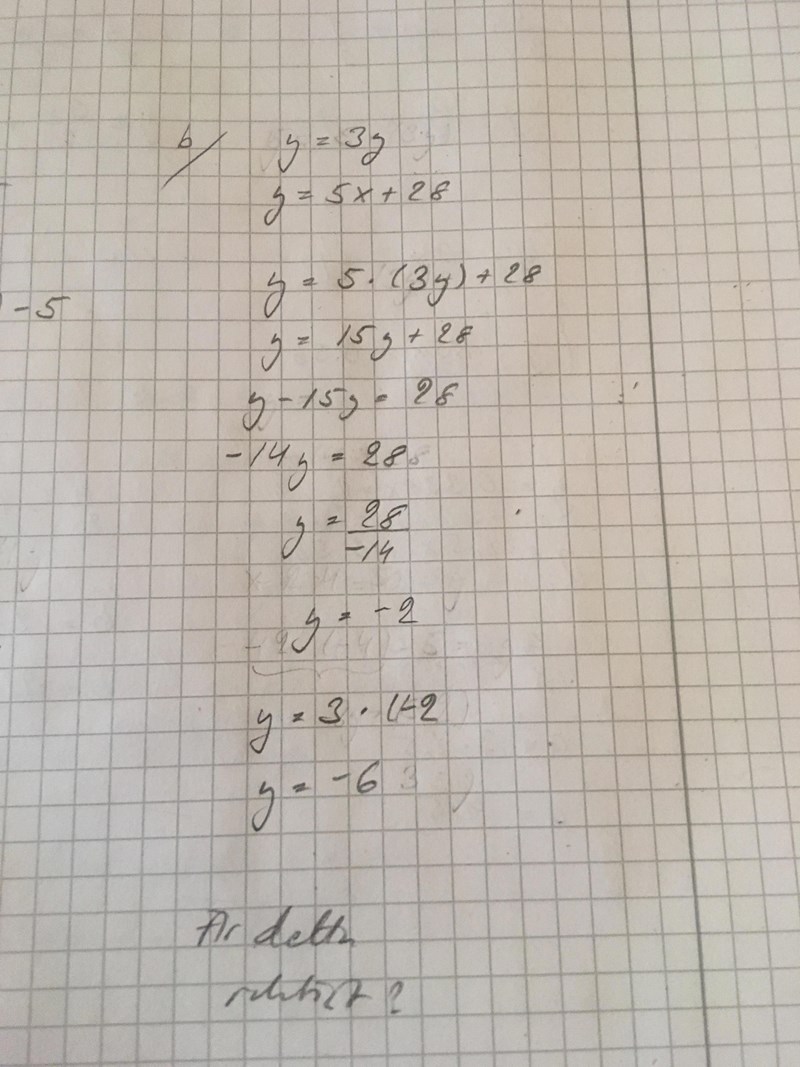 Nej det är inte riktigt. Du har nog skrivit av uppgiften fel. Antagligen ska första ekvationen vara x = 3y.