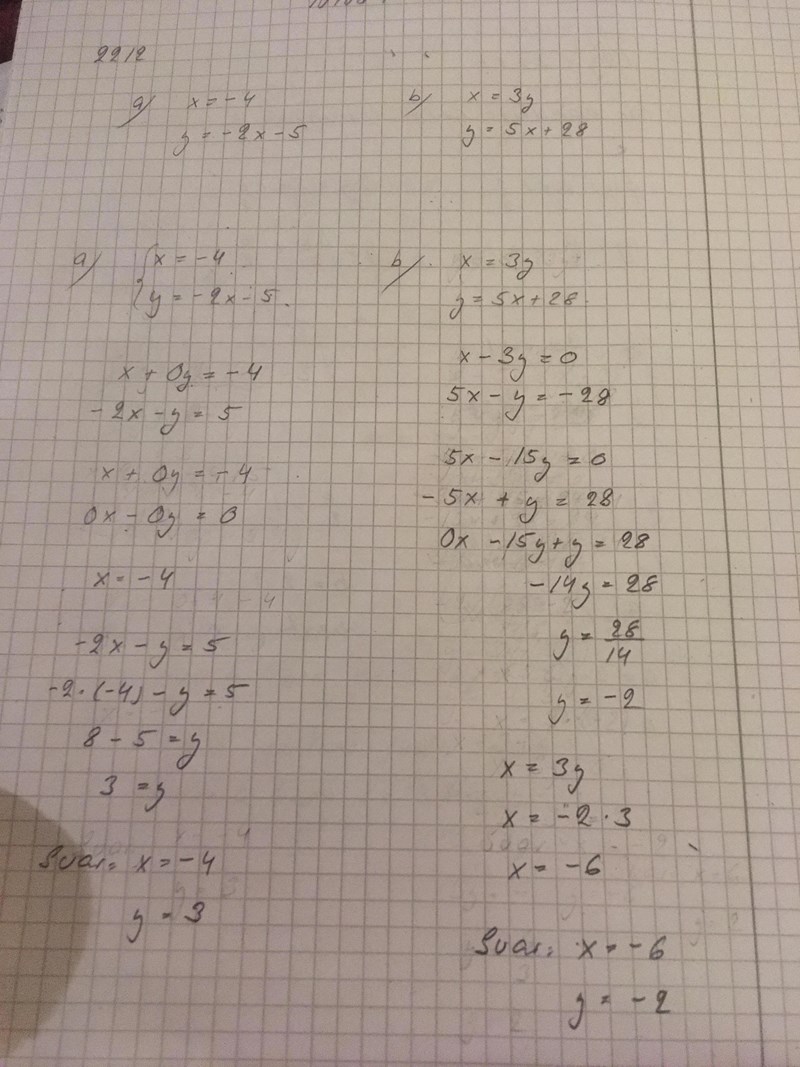 Hej Päivi. Du var löst båda ekvationssystemen med samma metod, nämligen additionsmetoden.