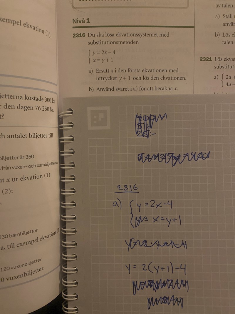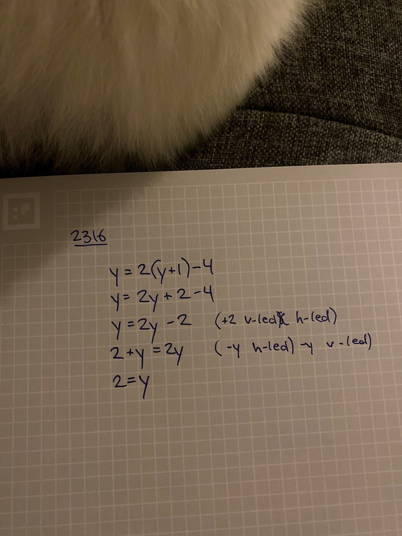 mitt svar blir -2.. svaret ska bli 2. Ser inte felet jag gör.. jag multiplicera in 2 i y+1.