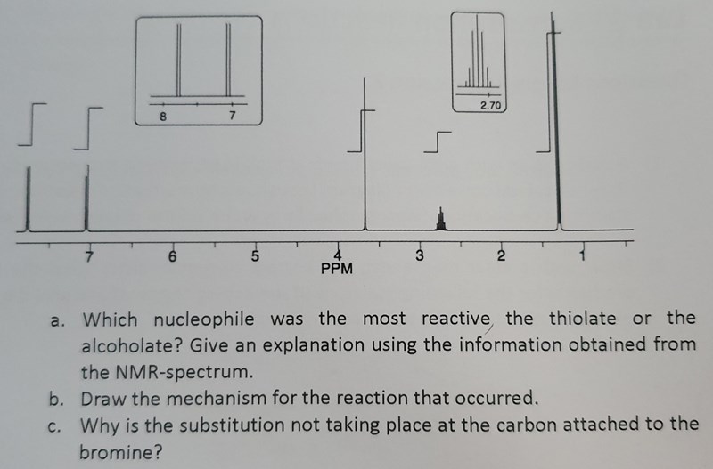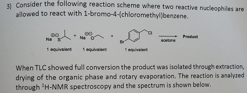 • Hur ser dina strukturformler ut för de två tänkbara produkterna? Eftersom detta handlar om 1H-NMR är det en bra idé att rita ut samtliga väteatomer. Ladda gärna upp en bild!