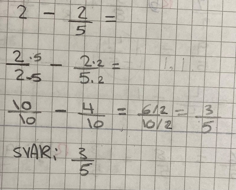Hej! Kan någon kolla vad jag gjorde för fel på denna. Frågan är 2- 2/5