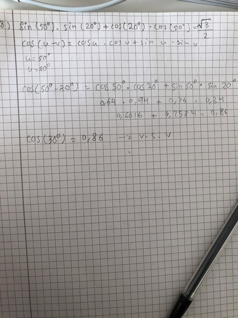Vet att jag har svarat rätt men är det här metoden korrekt? (Använde miniräknare för att ta fram cos 20 osv)