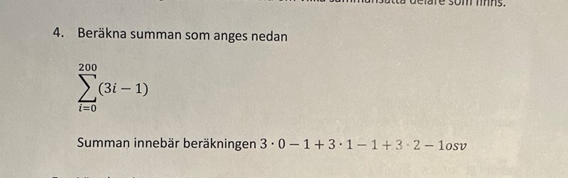 Nja, du räknar ut varje term, men sedan måste du ju addera varje term till totalen. Tex s=s+3*i-1