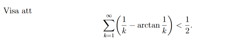 Notera också att man måste motivera på något sätt att f(x)= 1/x - arctan 1/x är avtagande och positiv för att få utnyttja sambandet mellan summor och integraler