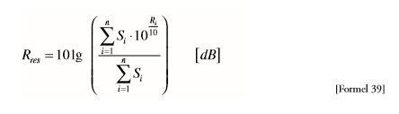 Jag räknar på resulterande reduktionstal Rw för sammansatta byggdelar ( t ex. vägg+dörr+ fönster+hål i vägg) med hjälp av arbetsmiljöverkets boschyr: