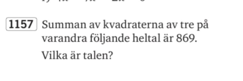 Jag tänkte att de kanske är x^2 + (1+X^2) + (2+x^2)=869 men de blev fel