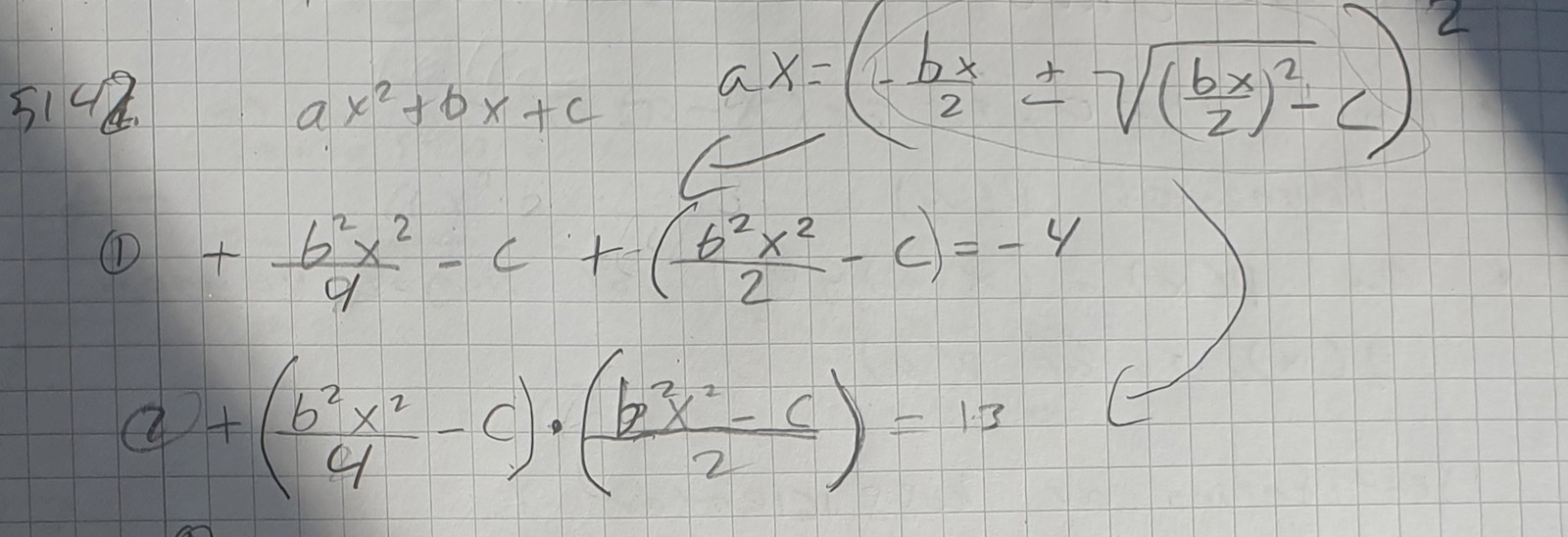 Summan av rötterna till andragradsekvation är -4 och produkten är 13. Bestäm ekvationen.