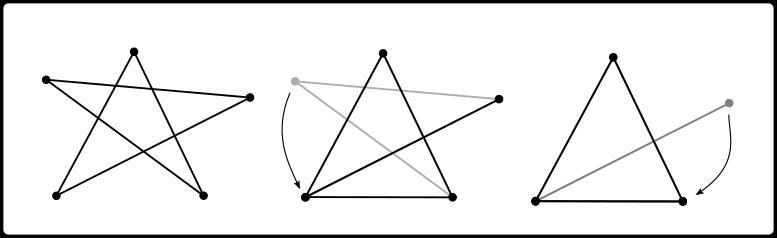 Injicerar en fullösning (Hör inte ihop med ovan diskussion): Om problemet ska vara lösbart så måste summan av de där vinklarna vara lika för alla pentagram oavsett hur de ser ut. Om så är fallet kan vi deformera pentagrammet till en form där summan är visuellt uppenbar.