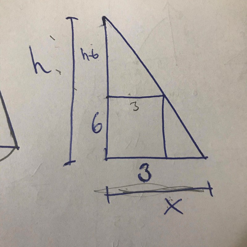 Hej om man har likformiga trianglar, hur ställer man upp förhållandet? Jag tänker på den stora triangeln och den mindre övre triangeln.
