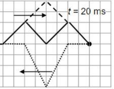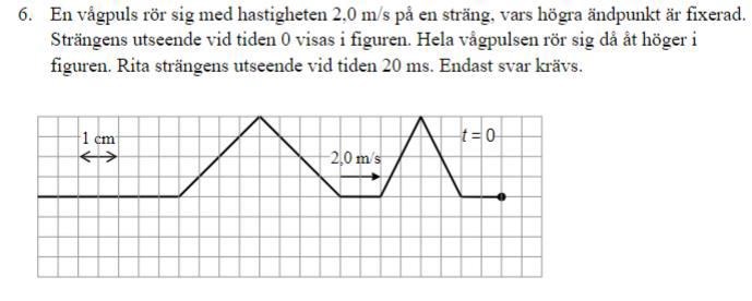 Efter 20 ms har vågmönstret rört sig 0,020∙2,0 m = 4,0 cm. Den högra delen av pulsen har