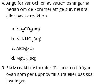 I d, hur kommer man fram till att lösningen blir neutral? Sedan hur många H2O molekyler reagerar den med?