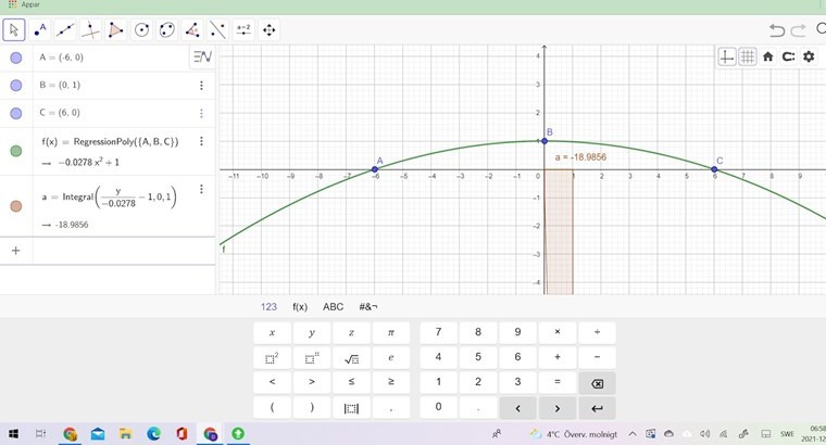 Ett fel är att du avrundar x2-koefficienten till -0,0278. Använd det exakta värdet -1/36 istället.