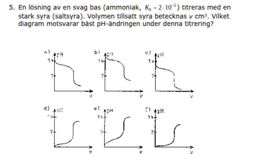 Vi vet att Kb=2*10-5. Vi vet också att halvtiterpunkten ska motsvara pKa.