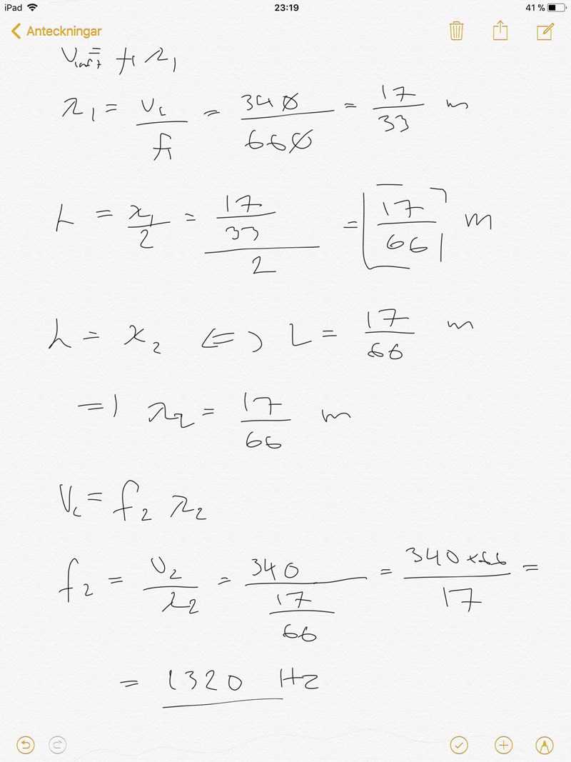 ”Vilken frekvens har den första övertonen till 660 Hz?”