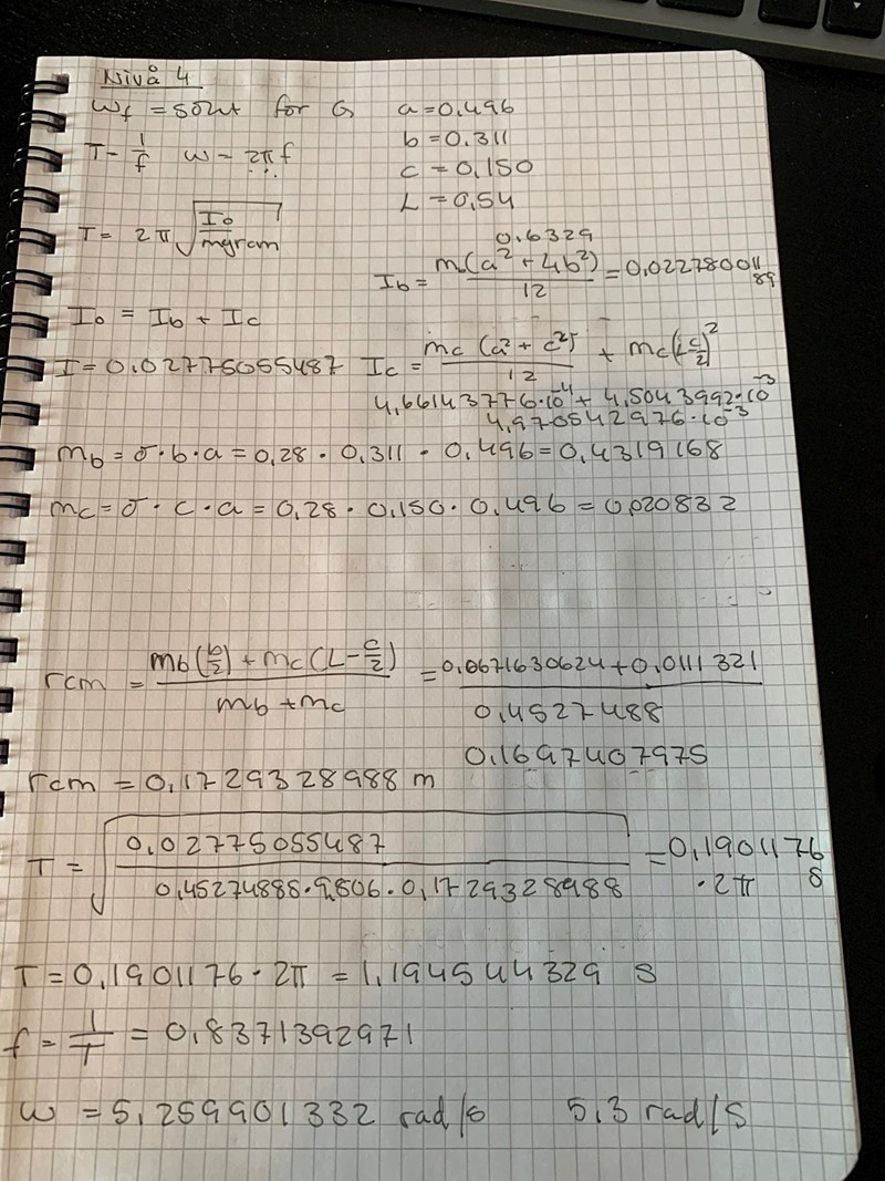 jag får vinkelfrekvensen till 5,3 rad/s men svaret ska vara 4,7.