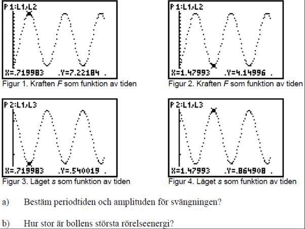 b) Totala energin i fjäder bör övergå till rörelseenergi och lägesenergi för bollen, men den största rörelseenergi fås när totala energin = rörelseenergi :