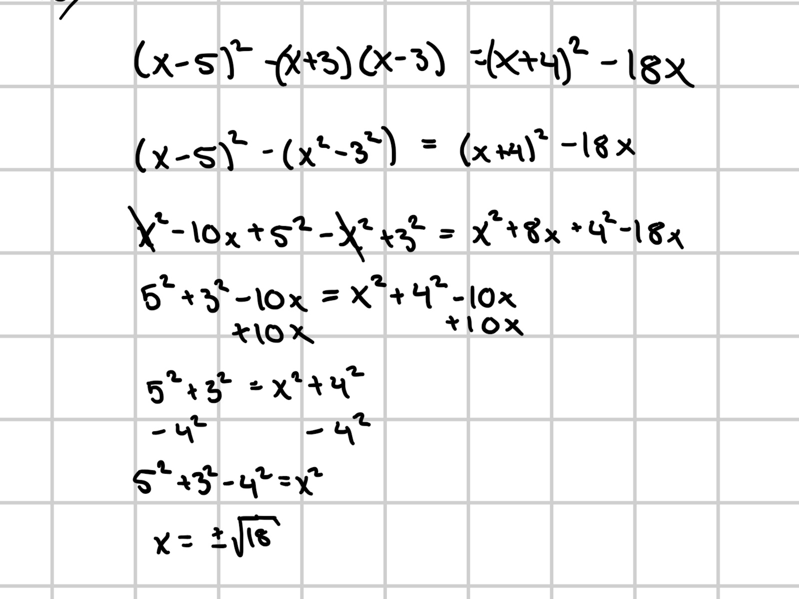 (X-5)2-(x+3)(x-3)=(x+4)2-18x