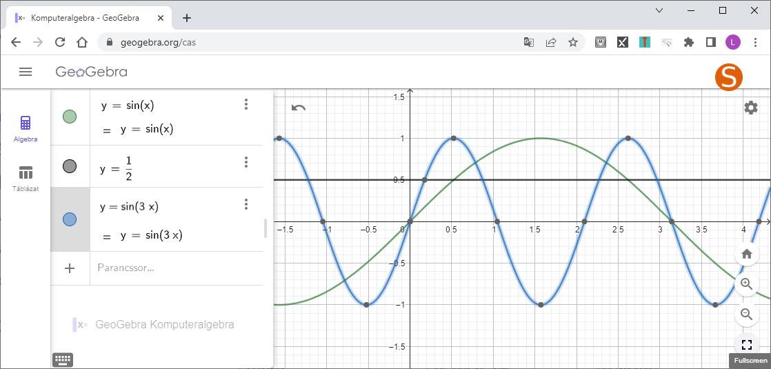 När jag vill lösa sin(x) < 0,5 försöker jag först hitta x värden där sin(x) = 0,5.