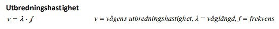 Utbredningshastigheten beräknas enkelt med en formel som ska finnas i din bok eller i ett formelblad som detta: