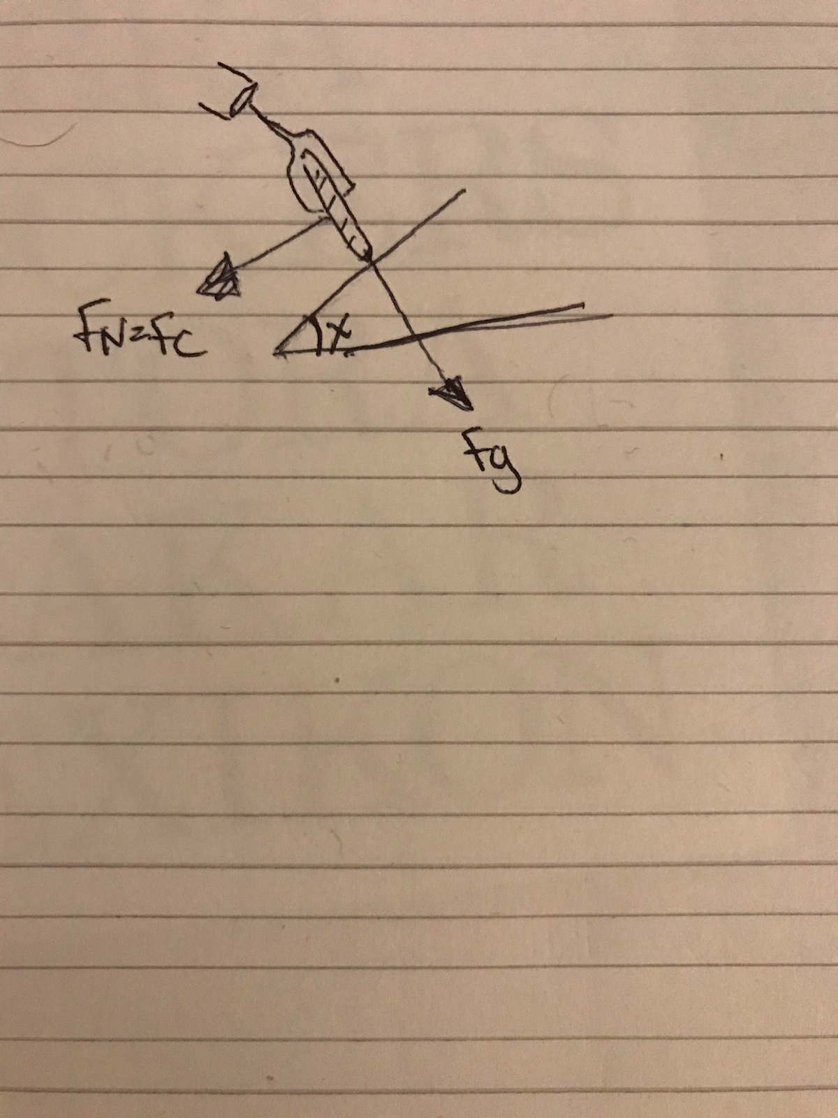 Relevanta krafter, Centripetalkraft, Normalkraft och tyngdkraft.