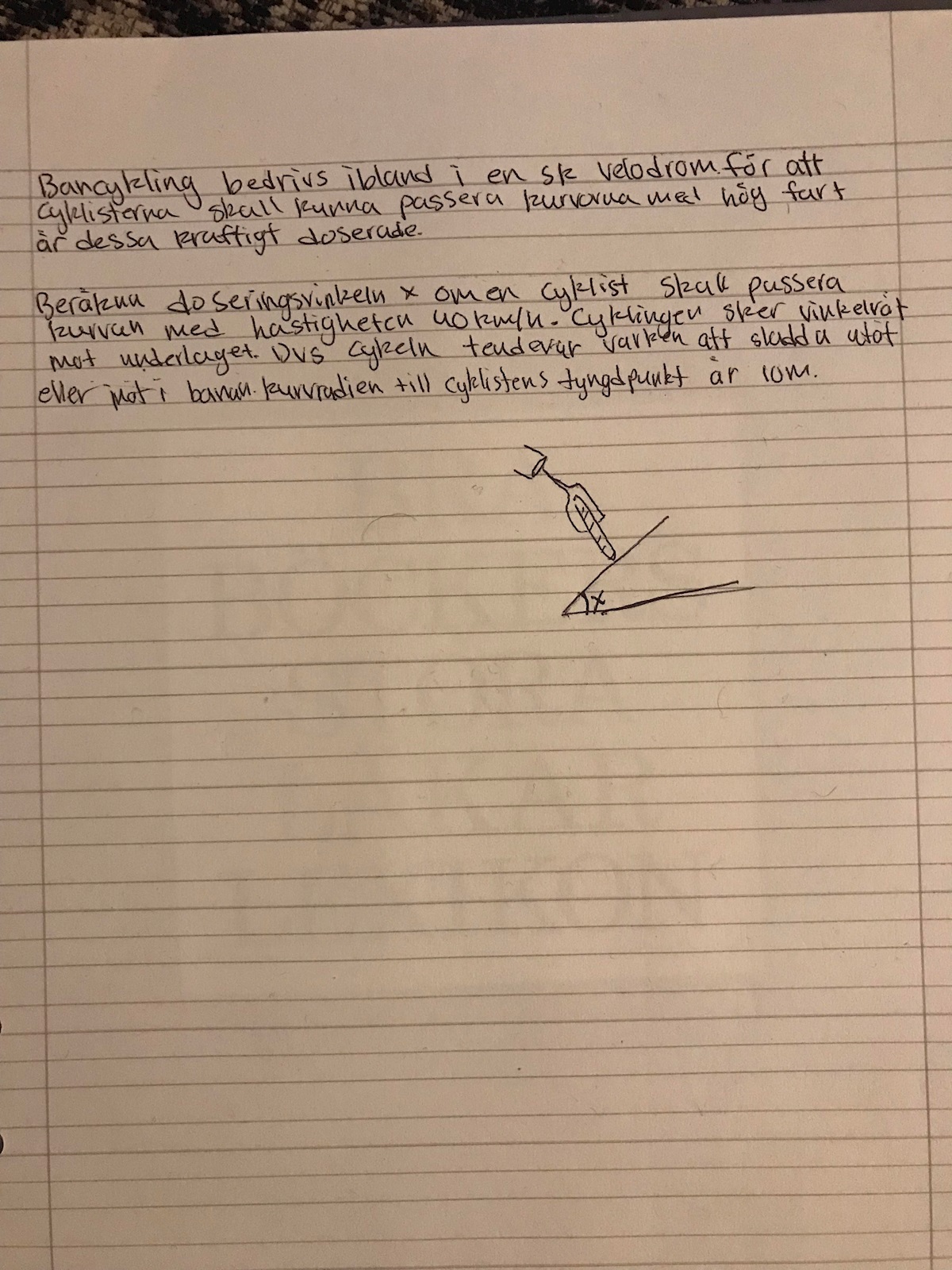 frilägg cyklisten, sätt ut relevanta krafter, komposantuppdela vid behov.