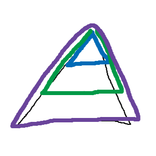 Börja med att rita lite stödlinjer. Du kan börja med att dra linjer från alla hörn, ned till basen på den största triangeln. Se till att de är vinkelräta mot basen. Ladda upp bilden.